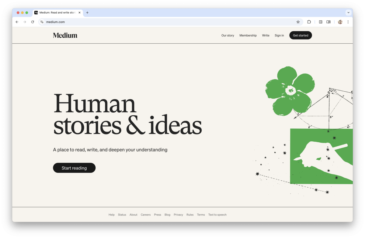 Medium is an online publishing platform and social journalism outlet that caters to writers and readers alike, and it provides content discovery via its algorithmic feeds. Creating your blog on Medium is completely free, and you can connect your Medium page to your subdomain (example: blog.mydomain.com).