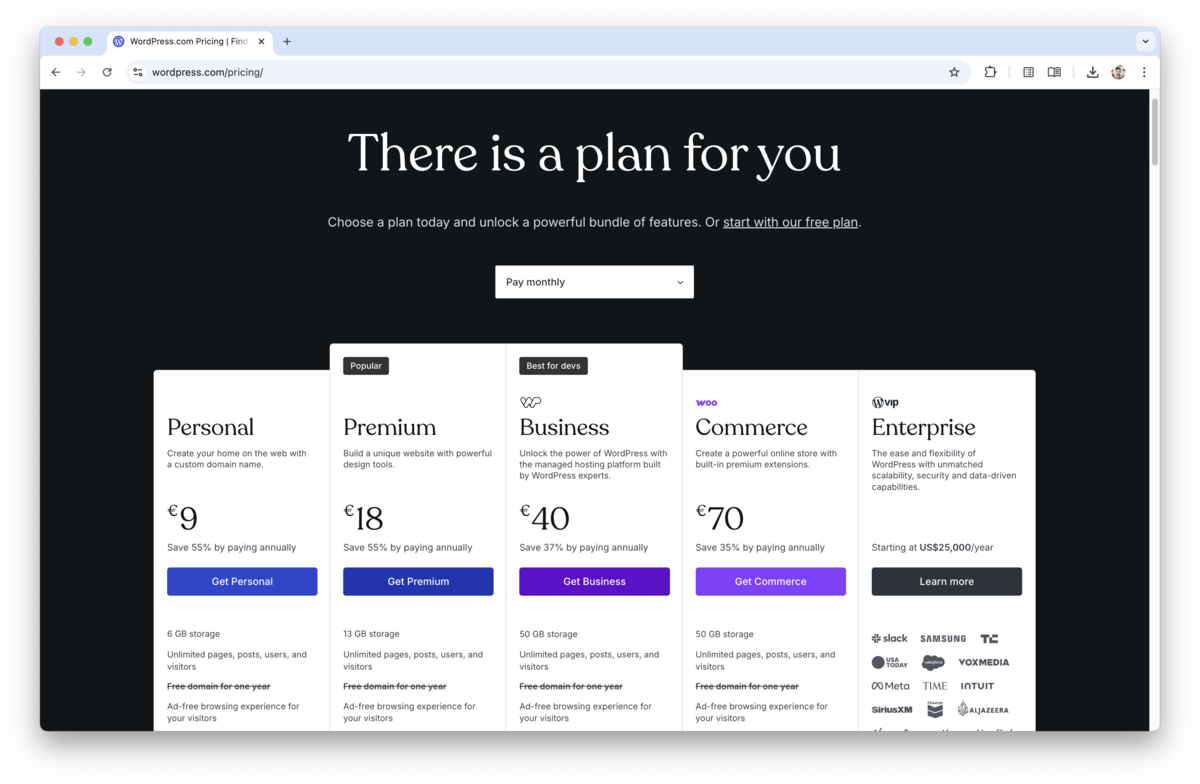 Back in 2003, WordPress started out as a simple blogging tool. Over the years it has evolved into a website builder, a CMS, and a publishing tool for bigger outlets. WordPress has an extensive library of plugins and extensions that serve various purposes when publishing. WordPress offers various pricing options starting from $9/month and all the way to $70/month. If paid yearly, prices are cheaper, but you have to pay the entire year upfront. Each plan comes with their own limitations and only the Business plan ($40/month) and above allow installing any plugins, including SEO tools. The initial plans, Personal $9/month and Premium $18/month, do not offer anything more than the basics. Most of the features and benefits are not clearly spelled out in their Pricing page and only experienced once the user hits those limitations and is presented with the option to upgrade. On the other hand, BlogMaker offers tools right out of the box without the need to install plugins that are hard to maintain and most of the time expose the website and blog to vulnerabilities.Pros